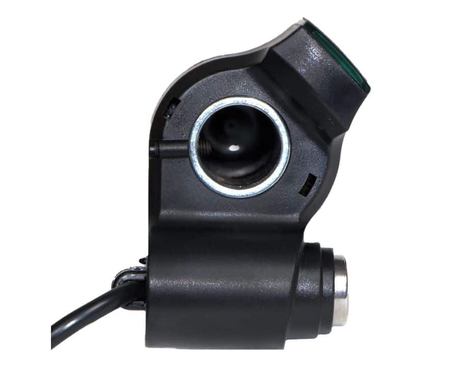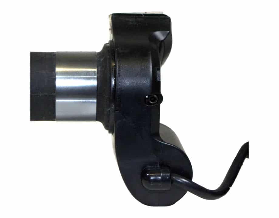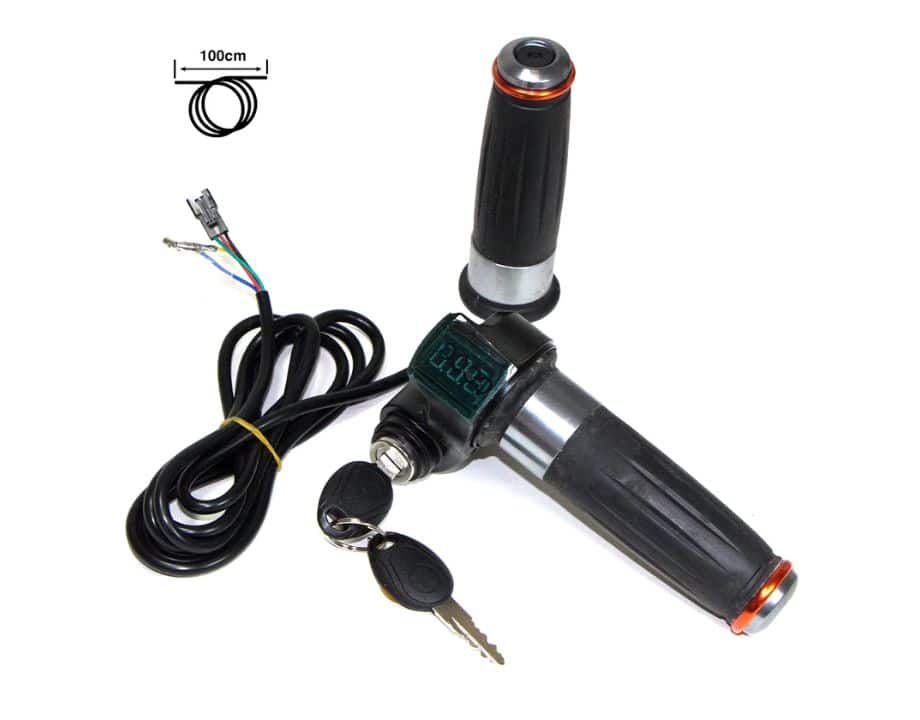 Acelerador de puño con medidor de voltaje y llave para el encendido.