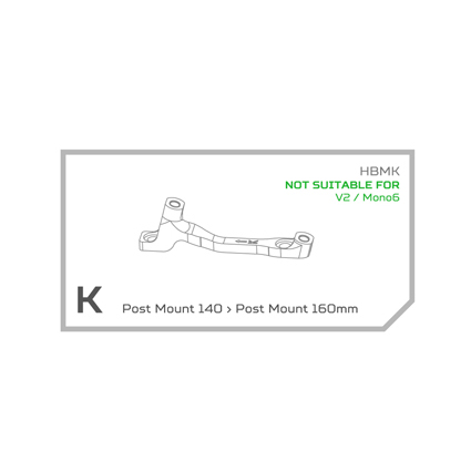 Ell Adaptador PM HOPE K Negro para anclaje Post Mount es un recambio original HOPE. Si quieres que tus frenos HOPE encajen perfectamente en tu horquilla o cuadro, utiliza adaptadores originales. Si tienes cuadro o una horquilla con soportes Post Mount directos a 140, con este adaptador puedes montar un disco de 160 mm