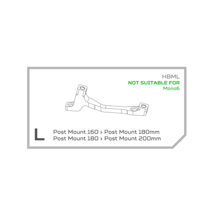Con el Adaptador PM HOPE L Negro podrás montar tu freno HOPE con un disco de 200 mm si tu horquilla o cuadro están preparados para discos de 180 mm, o bien montar discos de 180 mm si tu horquilla o cuadro sacan directamente 160 mm.