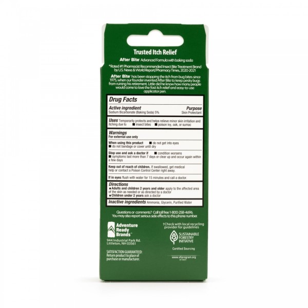 AFTER BITE, UN FAVORITO DE LA FAMILIA DURANTE 40 AÑOS, ES UNA FÓRMULA PATENTADA QUE ALIVIA LA PICAZÓN Y LA PICADURA DE MOSQUITOS, PULGAS Y OTRAS PICADURAS DE INSECTOS. PARA UN ALIVIO INSTANTÁNEO Y PERMANENTE DE LA PICAZÓN Y EL DOLOR, AHORA AGREGAMOS BICARBONATO DE SODIO, EL REMEDIO CASERO DE LA ABUELA CONTRA LAS PICADURAS Y PICADURAS DE INSECTOS. PREFERIDO POR FARMACÉUTICOS, ESTÁ RESPALDADO POR EXPERTOS, PARA QUE SEPA QUE FUNCIONA