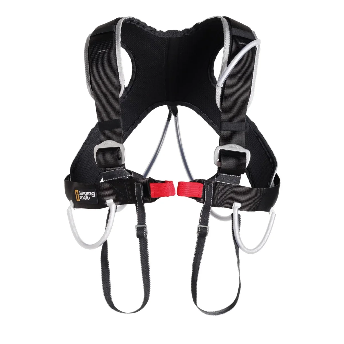 - Reduce la presión en la parte superior del cuerpo cuando se tiene una gran cantidad de material de escalada