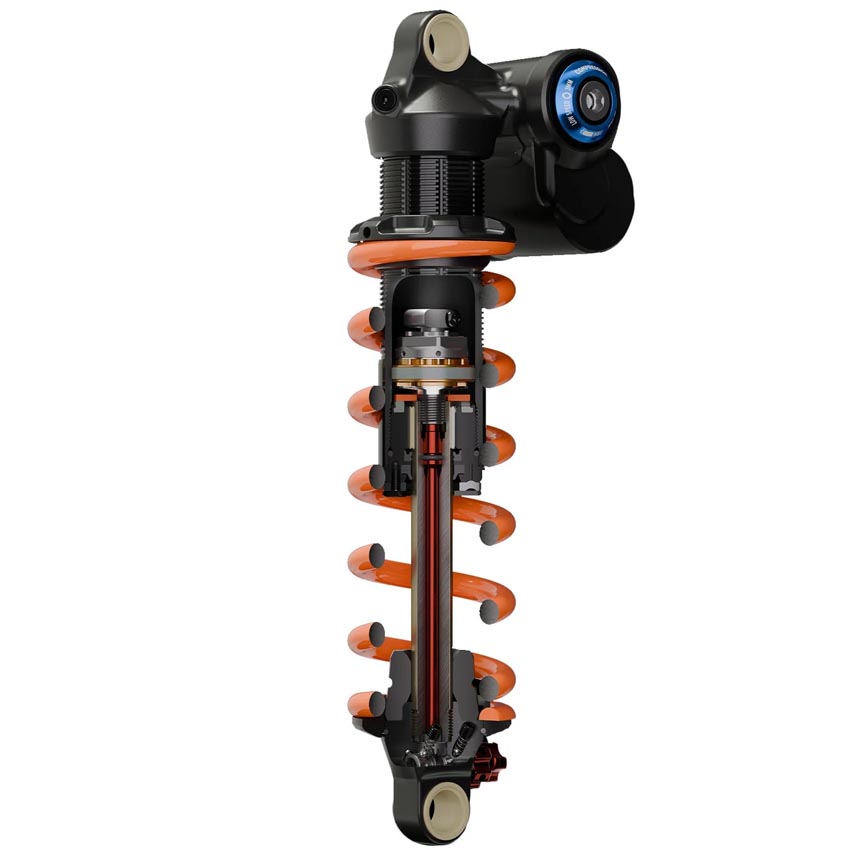 La combinación de un resorte helicoidal con componentes de fricción ultrabaja ofrece una sensibilidad superior en pequeños baches y un control progresivo en impactos grandes. El sistema de tope MCU añade absorción sin brusquedad al final del recorrido.
