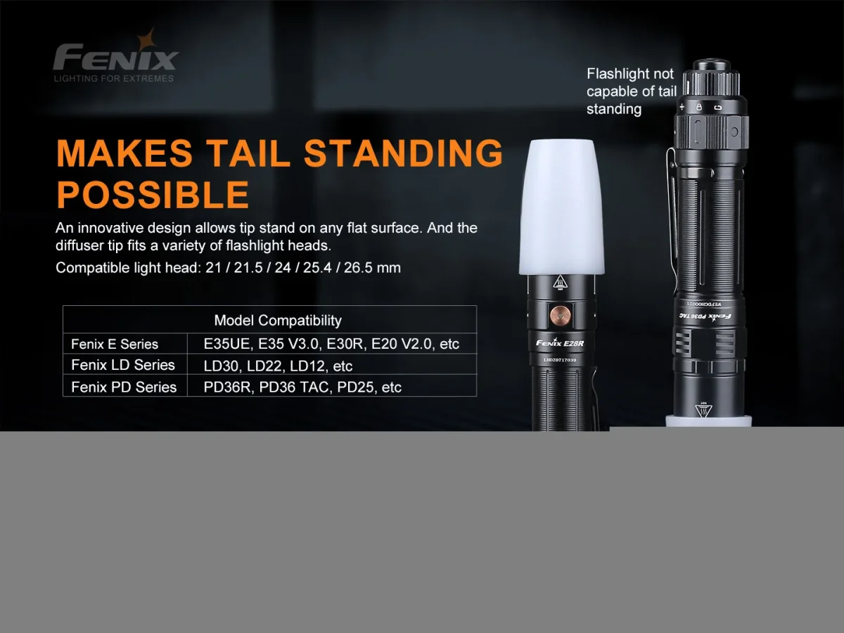Fenix AOD-S V2.0 es una mini punta difusora con un diseño innovador que permite colocar la punta en cualquier superficie plana. Transforma tu linterna Fenix en una linterna de lectura, señalización o emergencia. La fijación es rápida y segura con materiales de PC de alta calidad; duradero, resistente a impactos, resistente a altas temperaturas diseñado para su uso en el campo.