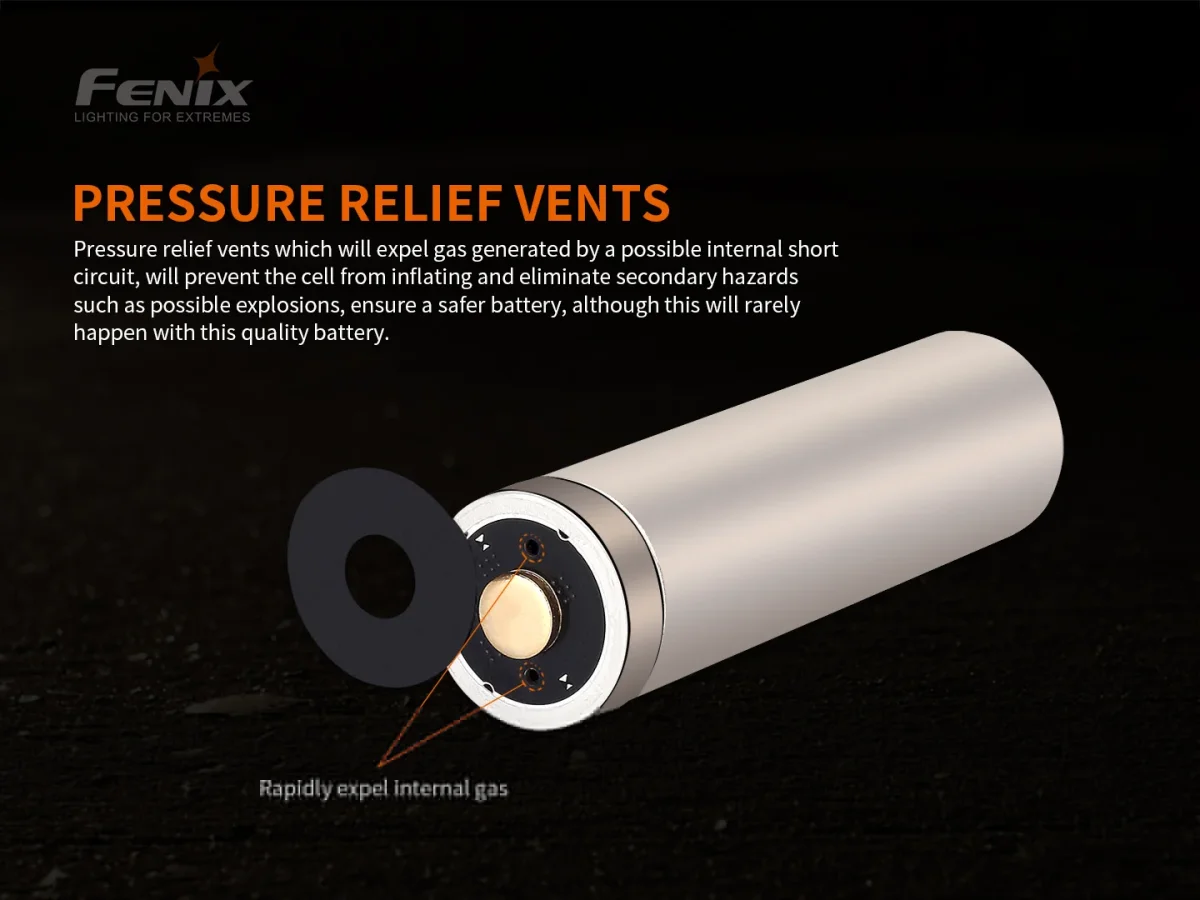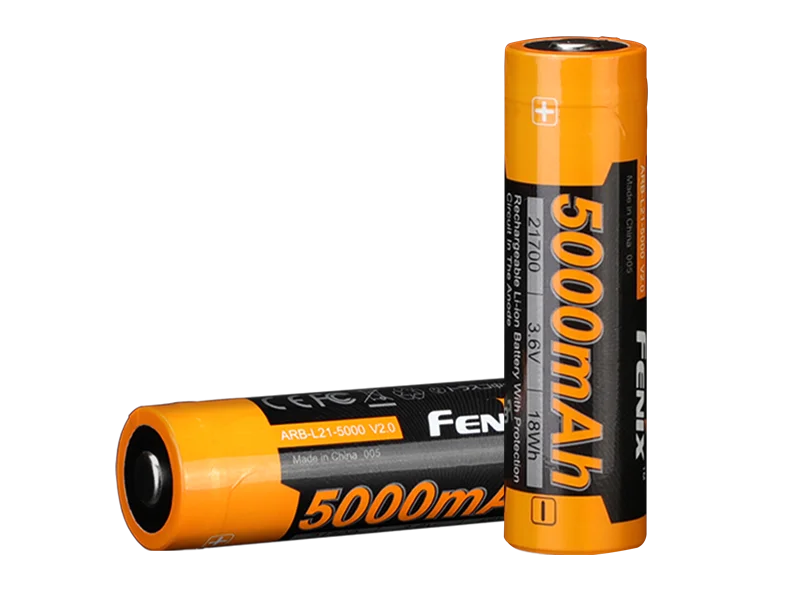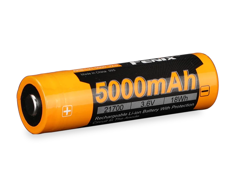 Fenix ARB-L21-5000 V2.0 es la última batería Fenix 21700 Li-ion con 5000mAh de capacidad de la batería, con suficiente potencia y un rendimiento constante. ARB-L21-5000 V2.0 proporciona las herramientas de iluminación con mayor duración. La protección múltiple garantiza la seguridad de uso y el buen rendimiento de la batería; la tecnología de remachado de la carcasa de acero protege la batería contra daños; los respiraderos de alivio de presión expulsan rápidamente el gas interno.