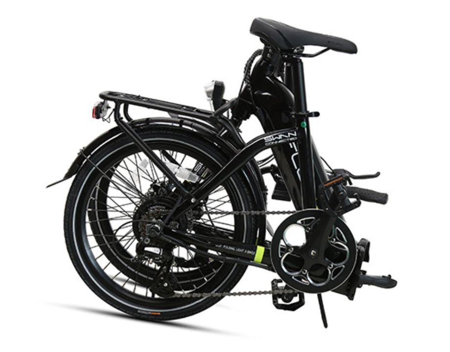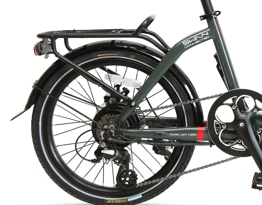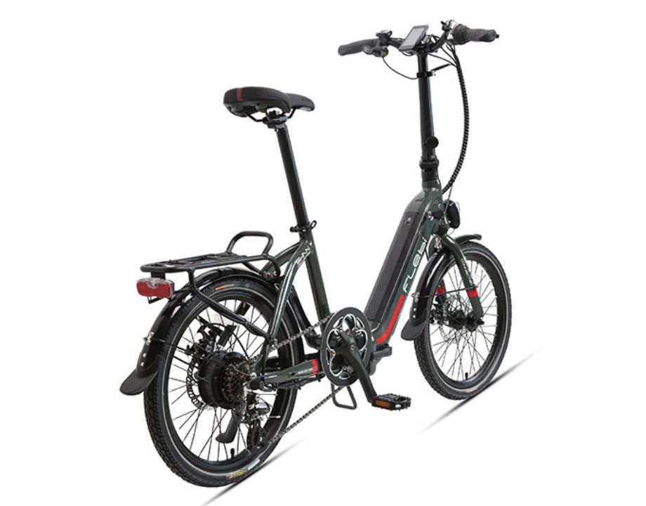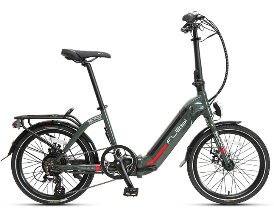 La Bicicleta Plegable Flebi Swan Lite es una bicicleta eléctrica plegable de 20″ con motor trasero muy cómoda, práctica y funcional. Supone un re-styling de la clásica plegable de barra baja y cuello de cisne, aportando un flamante cuadro de aluminio hidroformado con líneas actuales y una batería de 10.4Ah (ampliable a 11.6Ah de manera opcional) integrada en él, para lograr una apariencia fina y compacta. Monta cambios Shimano de 7 velocidades, frenos de disco Tektro, neumáticos Kenda antipinchazos y luces frontal y trasera alimentadas por la batería. Con un plegado sencillo y un precio excepcional.