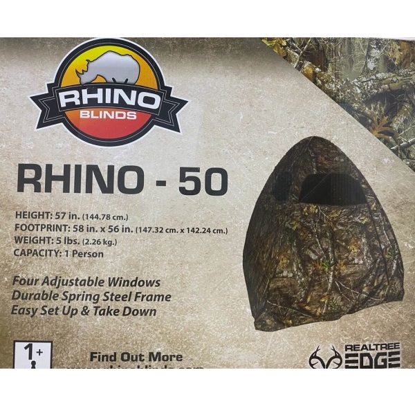 EL RHINO-50 ES UN ESPIADERO DE SUELO LIVIANO PARA UNA SOLA PERSONA QUE ES RÁPIDA Y FÁCIL DE INSTALAR. IDEAL PARA LA CAZA DE ARMAS, ESTE ESPIADERO SE PUEDE MONTAR Y DESMONTAR EN CUESTIÓN DE MINUTOS. EL CAMUFLAJE REALTREE EDGE PERMITE QUE ESTA PERSIANA SE MEZCLE PERFECTAMENTE CON SU ENTORNO.