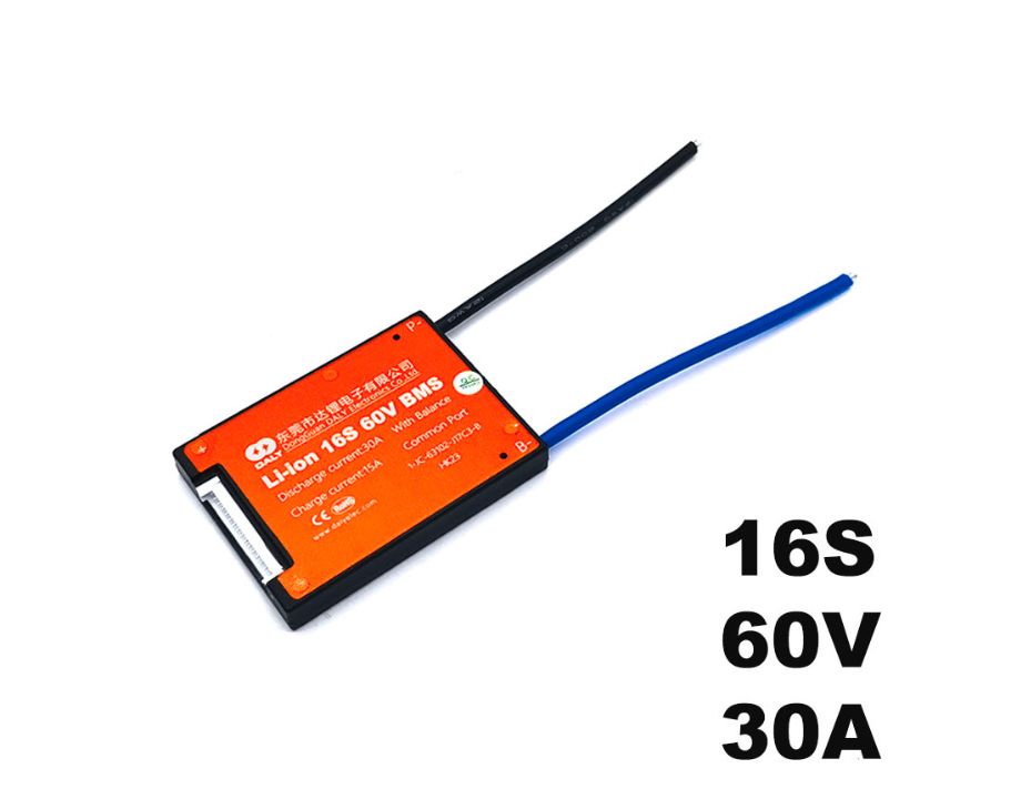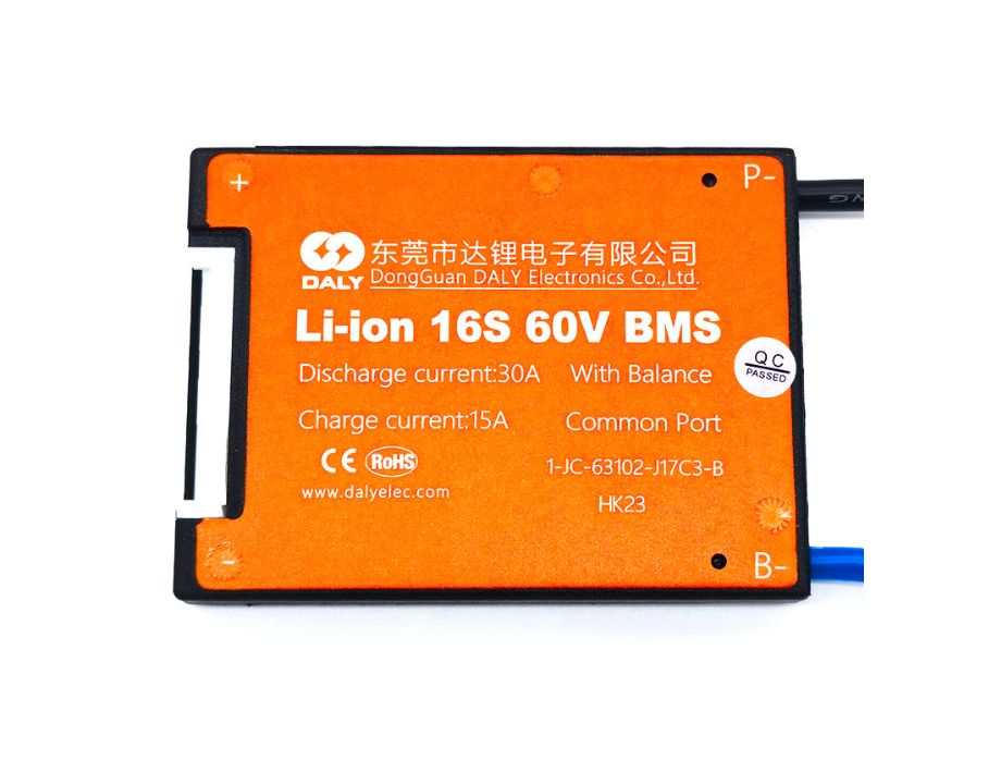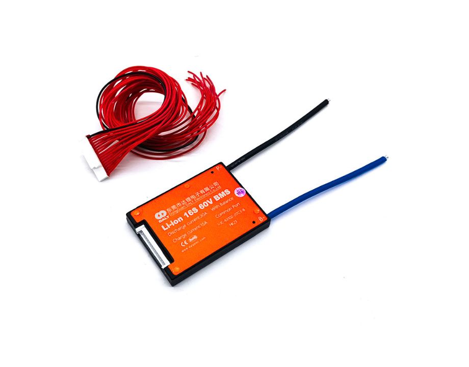BMS de la marca Daly para baterías de 60v(16s) con una capacidad de descarga de 30A.