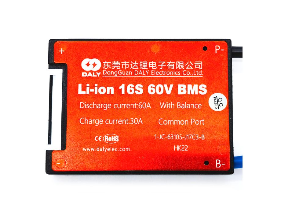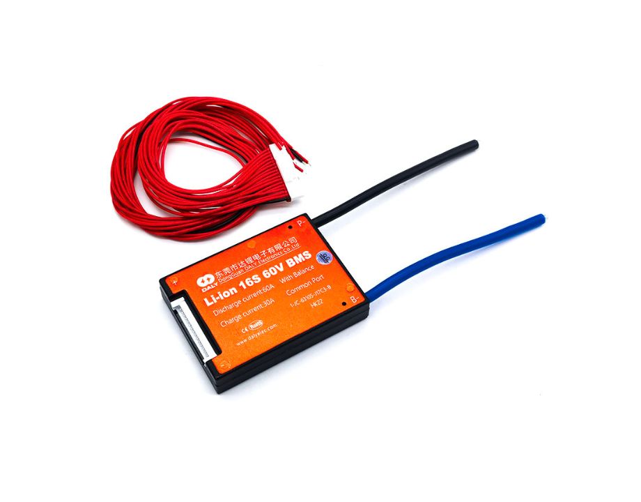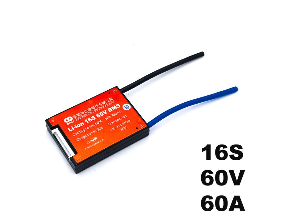 BMS de la marca Daly para baterías de 60v(16s) con una capacidad de descarga de 60A.