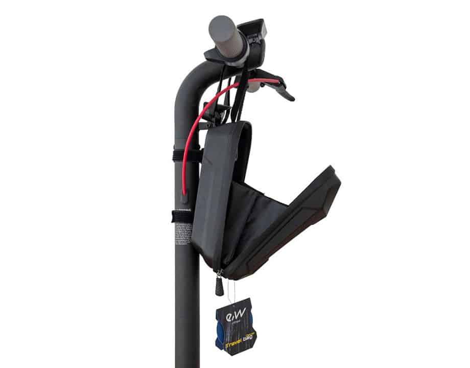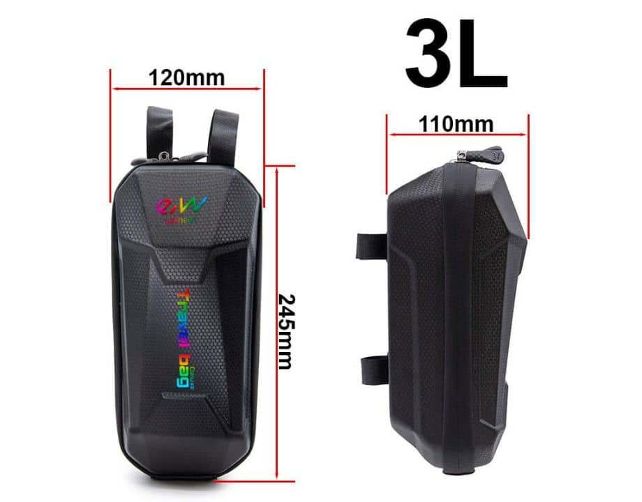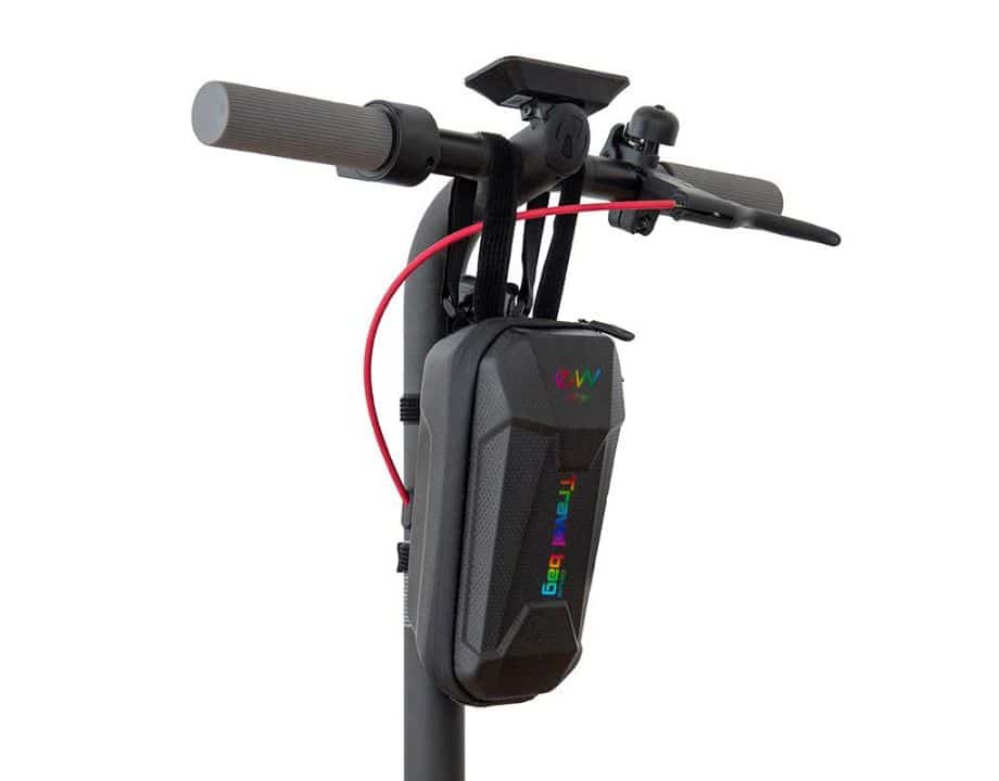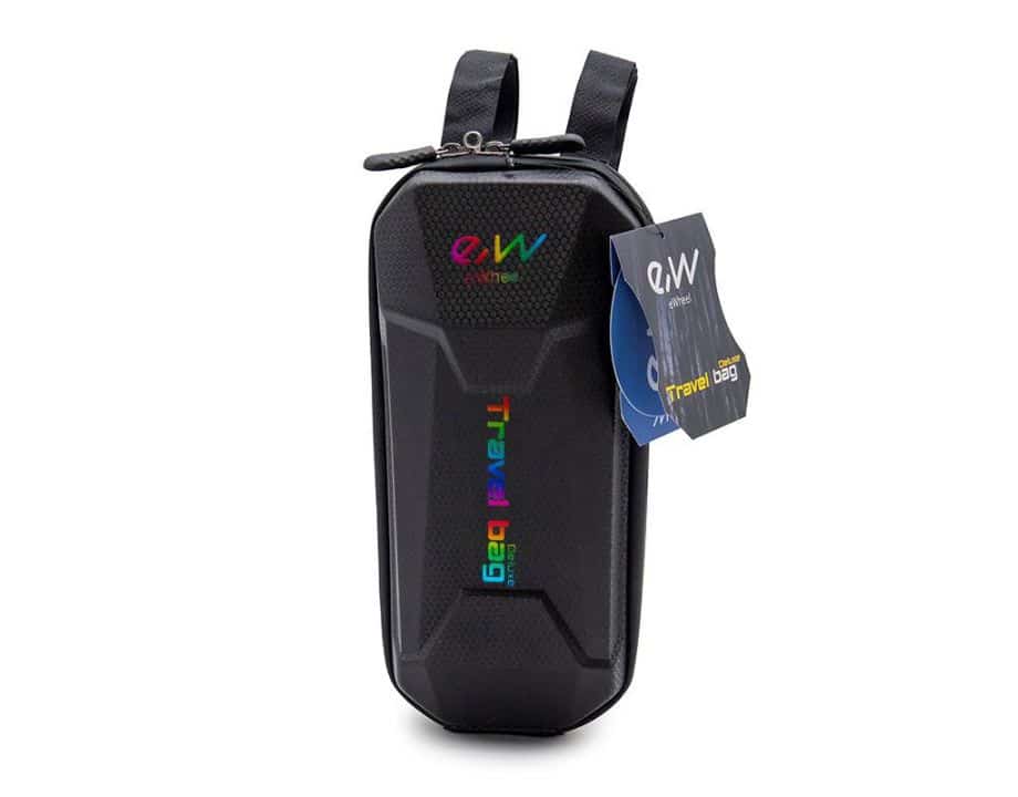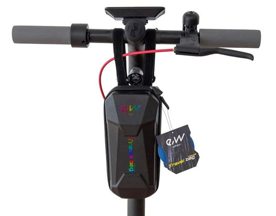 Bolsa para manillar deluxe de color negra con letras multicolor con velcro y una capacidad de 3L de la marca Ewheel.