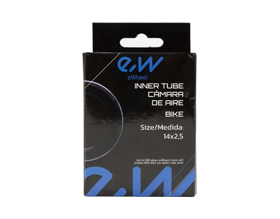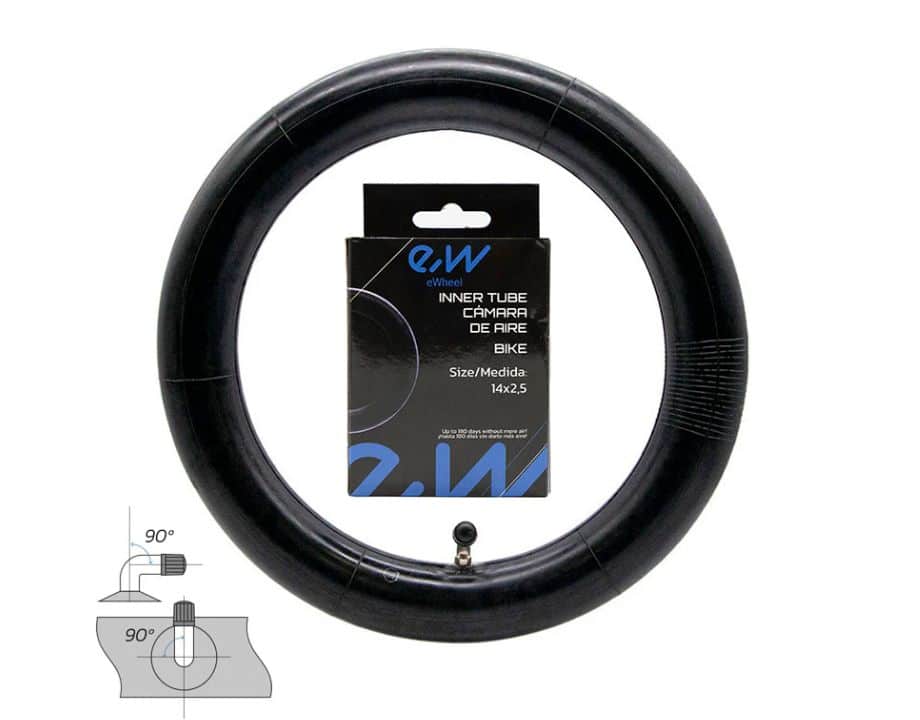 Cámara de aire de la medida 14×2,5 con válvula curva de 90º x 90º de la marca Ewheel.