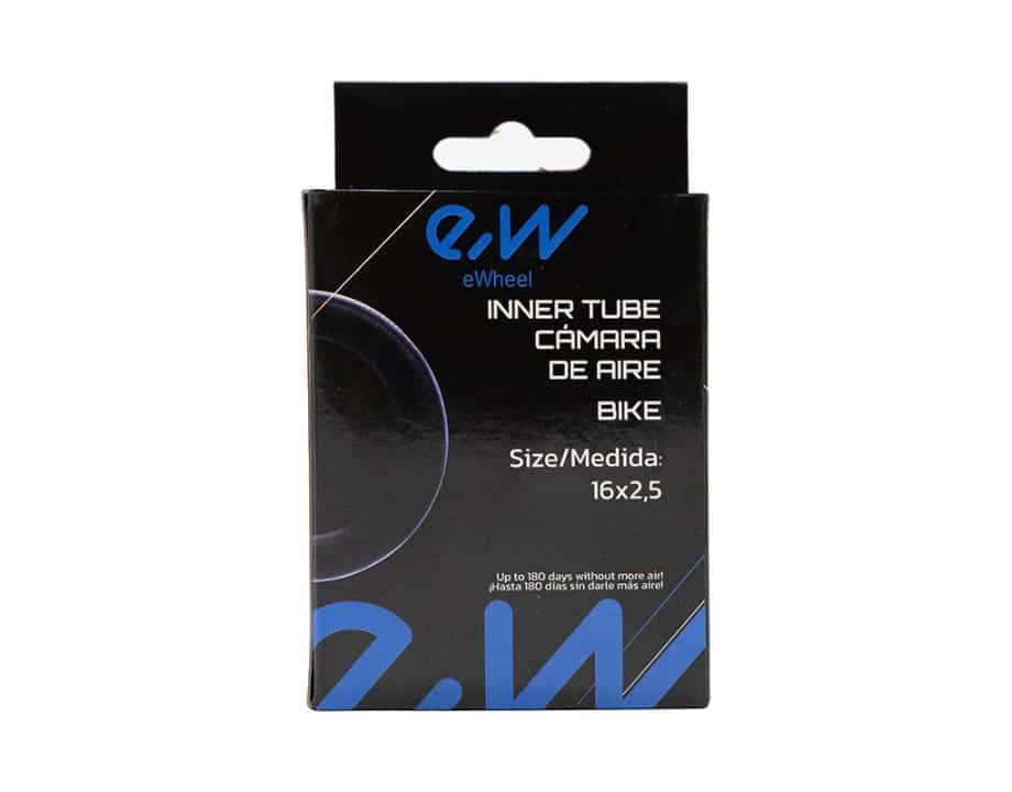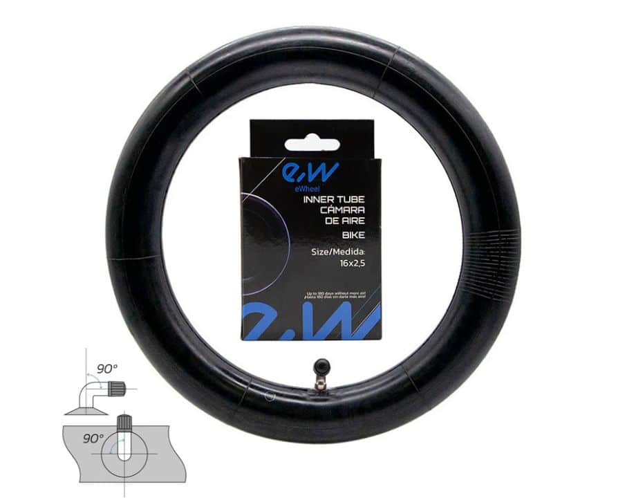 Cámara de aire de la medida 16×2,5 con válvula curva de 90º x 90º de la marca Ewheel.