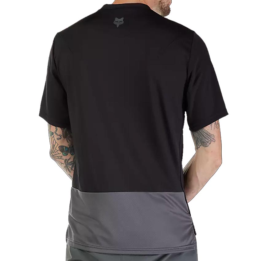 La nueva Camiseta Fox Ranger Wordmark Black es la combinación perfecta de versatilidad, comodidad y estilo para los amantes del mountain bike. Confeccionada con materiales reciclados y tejido técnico de malla transpirable, mantiene tu piel seca al absorber la humedad mientras pedaleas. Su ajuste optimizado y su panel trasero más largo ofrecen una cobertura ideal para tus movimientos sobre la bici.