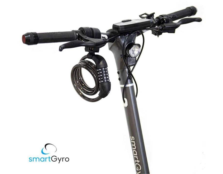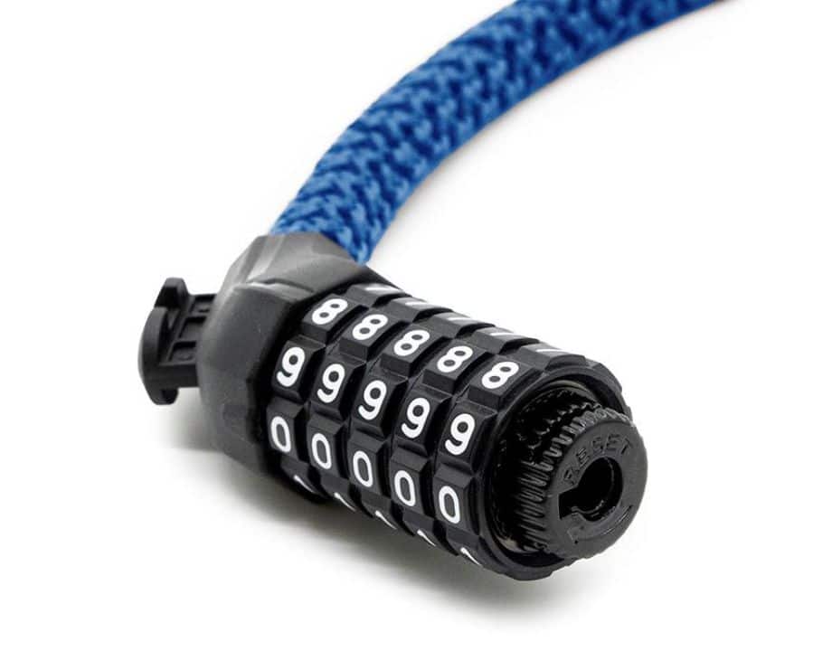 Candado modelo EWLK025 con contraseña y funda de nylon azul de la marca Ewheel válido para patinete y bicicleta.