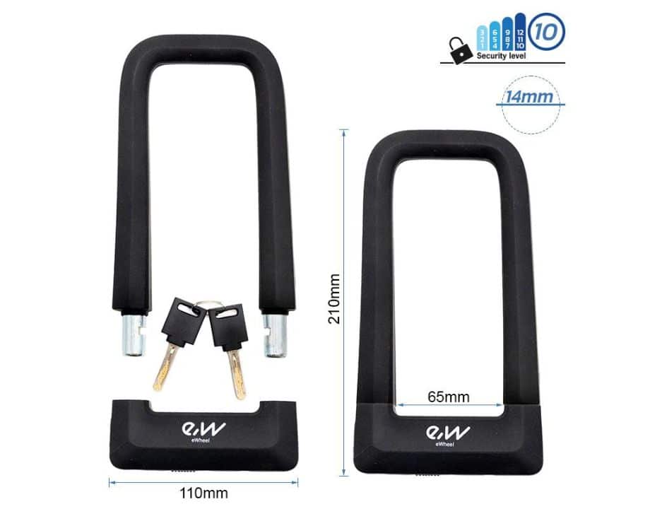 Candado modelo EWLK023 tipo U con llave de color negro de la marca Ewheel.