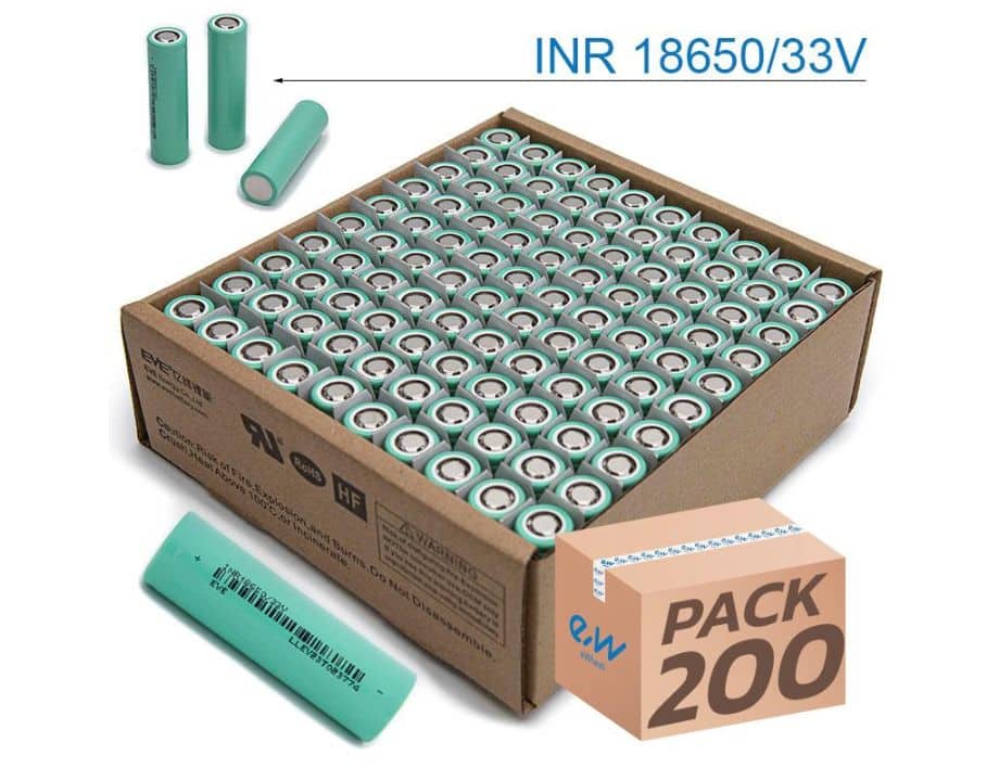 Celdas de Lí-ION ICR18650 de la marca EVE de 3100mAh de 33V y 10A de descarga.