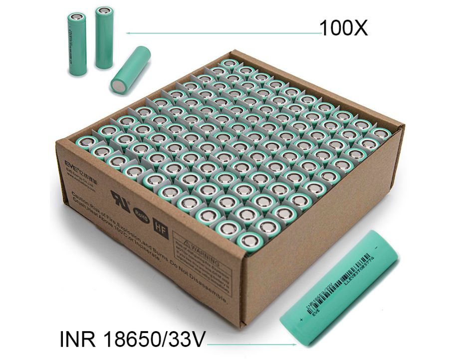 Celdas de Lí-ION ICR18650 de la marca EVE de 3100mAh de 33V y 10A de descarga.
