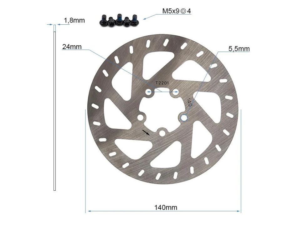 Disco de freno de 140mm y 5 agujeros válido para el patinete eléctrico de la marca Xiaomi Mi4.