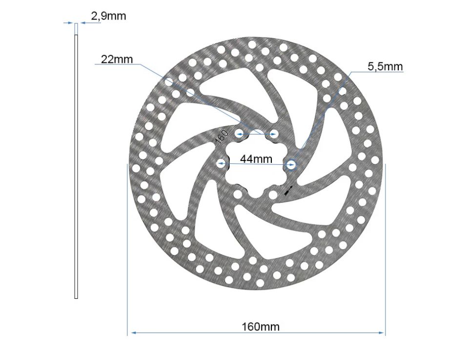 Disco de freno reforzado (2,9mm grosor) y 160mm – 6H en plateado.