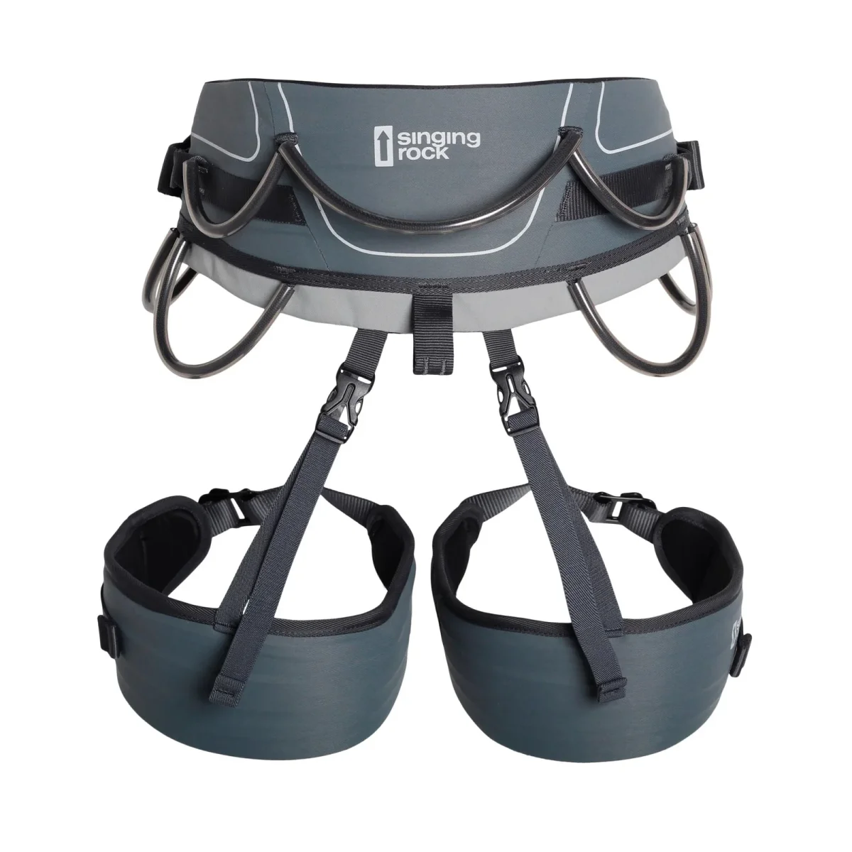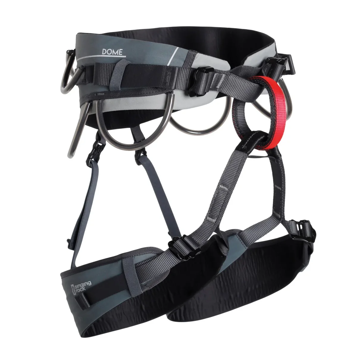 - el cinturón está equipado con dos hebillas para un centrado perfecto, el sistema patentado hebilla Rock&Lock permite ponerse y quitarse el arnés de forma rápida y cómoda