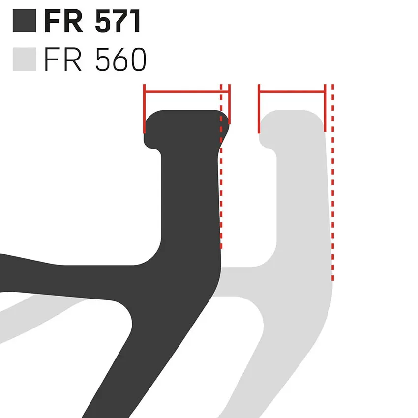 El nuevo aro FR 571 tiene una nueva modificación el el perfil, añadiendo más material en los puntos más necesarios para proporcionar una mayor resistencia a los impactos. El extremo del labio se ha ampliado y da resistencia extra y minimiza los pinchazos por pellizco. Además el proceso de soldadura en la unión del aro la hace mucho más ligera y resistente. Y para reducir las tensiones localizadas, se incluyen también las cabecillas DT Swiss Hexagonales Pro Head y las arandelas PHR.