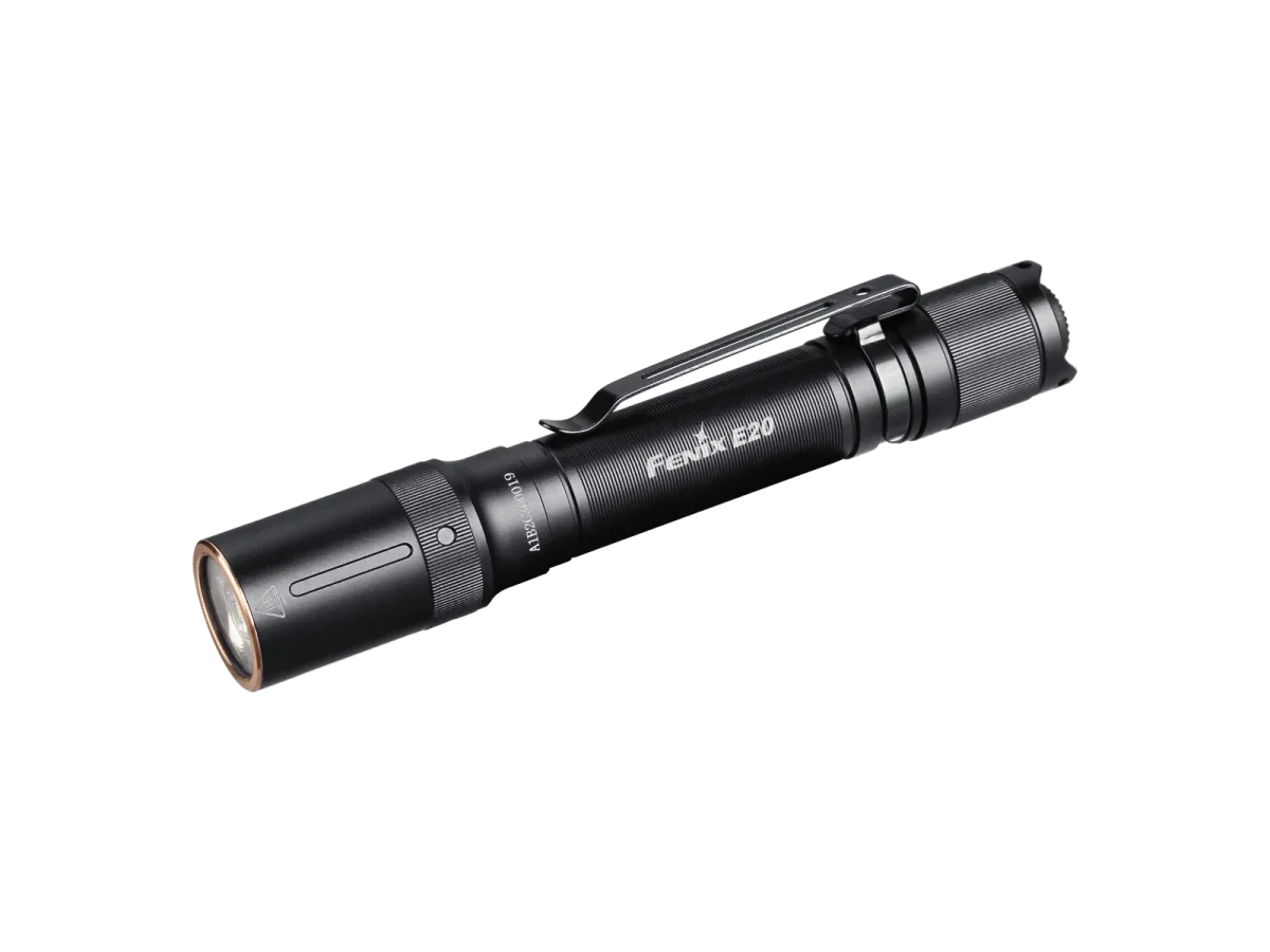 La linterna Fenix E20 V2.0 es una linterna EDC (every day carry) portátil. Se puede seleccionar el nivel de iluminación con una sola mano a través del interruptor de cola simple. Equipa un solo LED Luminus SST20, la luz ofrece una salida máxima de 350 lúmenes y una distancia máxima del haz de 126 metros. La linterna viene con dos baterías AA y las baterías pueden ser reemplazables. Las características adicionales incluyen 4 niveles de salida, circuito regulado digitalmente y protección con clasificación IP68. La linterna es versátil en actividades al aire libre y en la vida diaria.