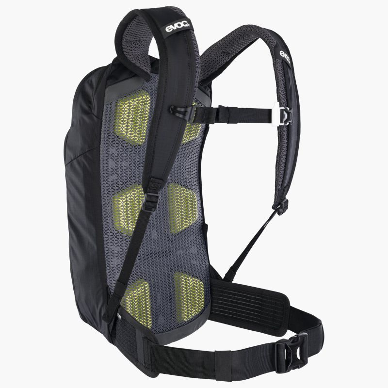 Equipada con una correa de pecho ajustable y la construcción Body Hugging, la Evoc Stage 12 Black se ajusta perfectamente al torso, evitando movimientos incómodos en cualquier terreno. Su cinturón de cadera Airo Flex, fabricado con un tejido resistente, garantiza una óptima ventilación y distribución de carga. Las correas Brace Link mejoradas, junto con las costuras reforzadas, reducen fricciones y puntos de presión, haciendo que cada trayecto sea más cómodo.
