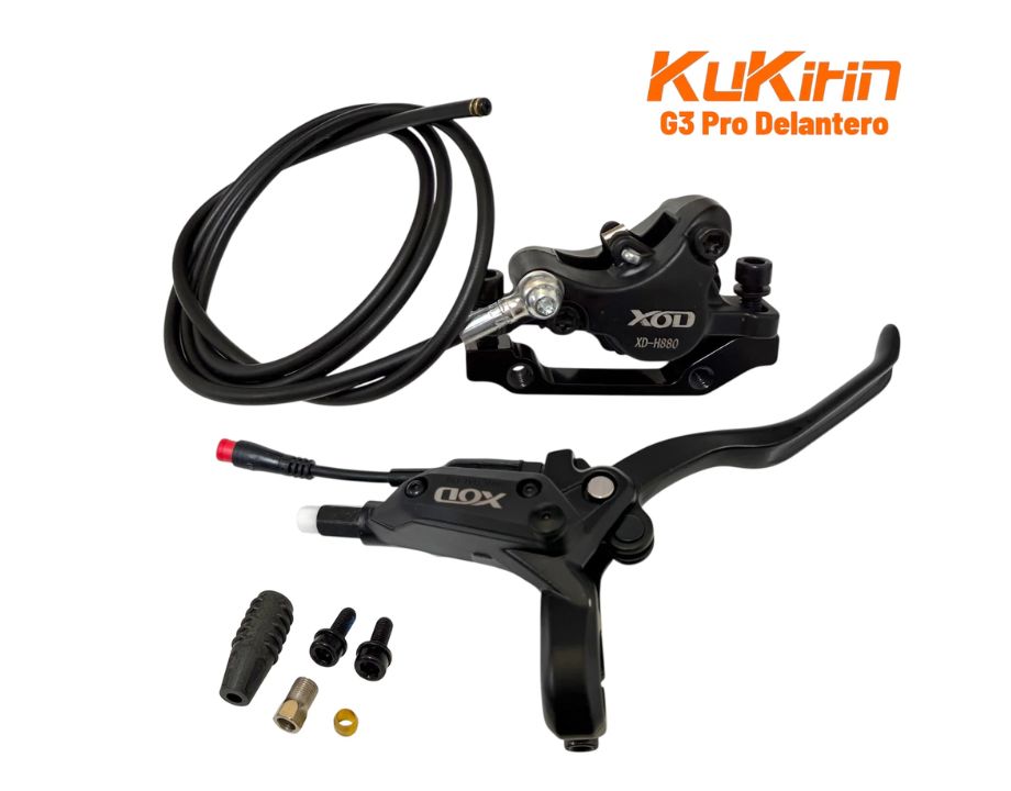 Kit de freno hidráulico delantero que incluye la pinza y la maneta válido para el patinete eléctrico de la marca Kukirin G3 Pro.