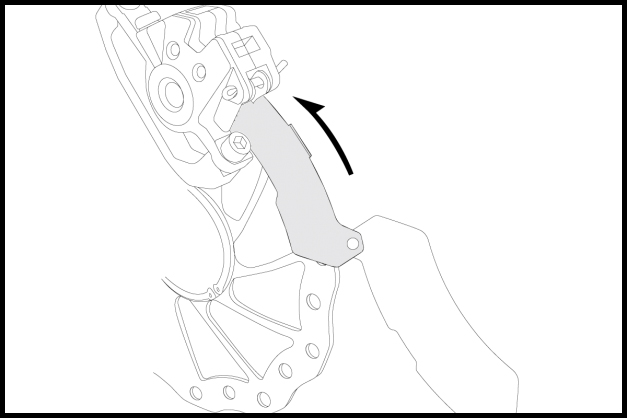 - Coloca la herramienta en el disco entre las pastillas del freno de disco.