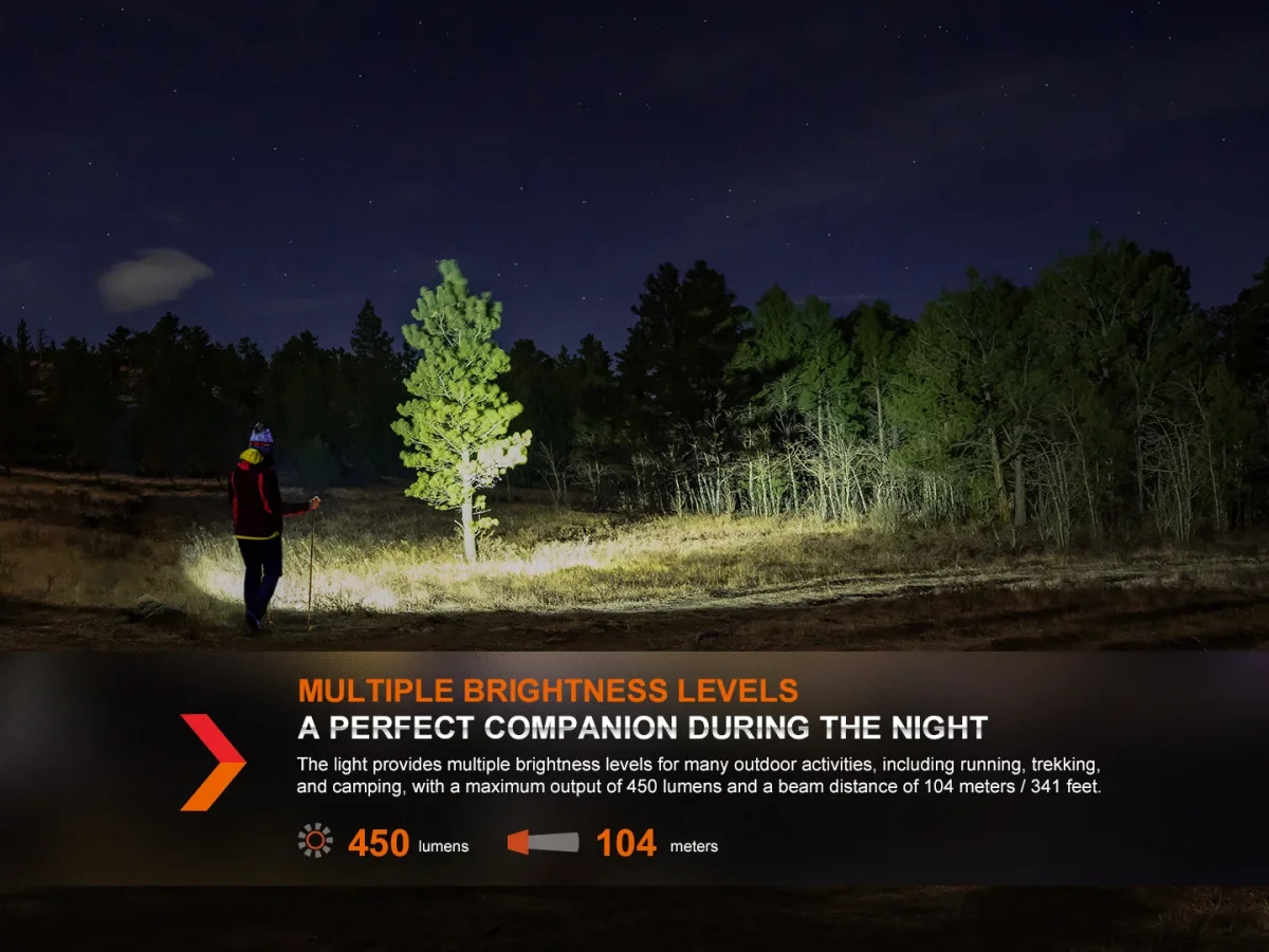 – Brillo máximo de 450 lúmenes, el rango más largo de 104 metros