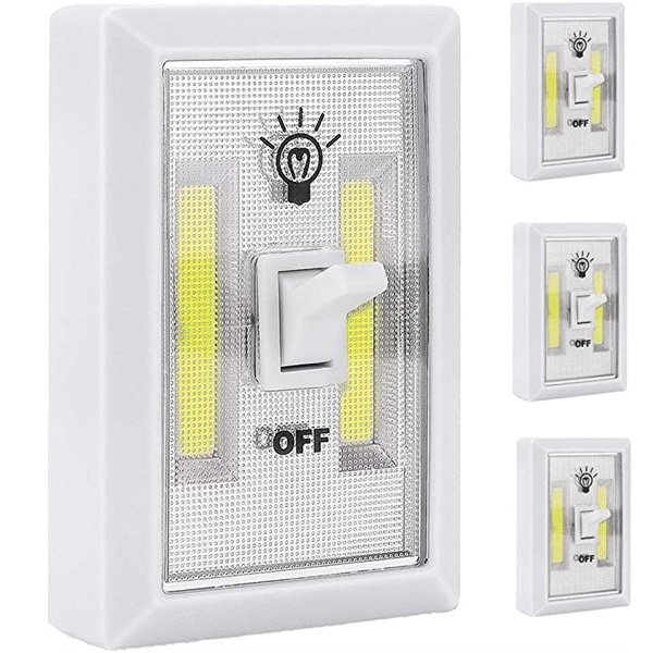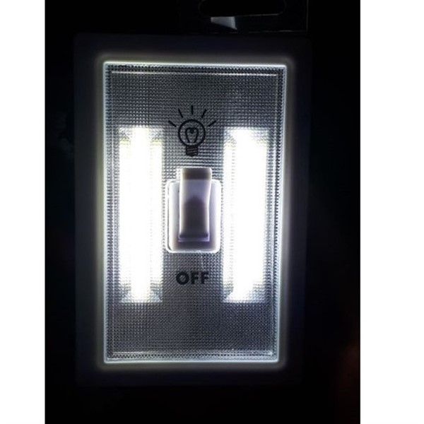 LAMPARA LUZ LED, DISEÑO DE INTERRUPTOR COLOR BLANCO QUE FUNCIONA CON 4 BATERIAS TRIPLE A, PERFECTO PARA SU COCHERA, ARMARIOS Y LUGARES OBSCUROS DE SU HOGAR, VIENE CON IMAN INCORPORADO Y UN ORIFICIO PARA COLGAR