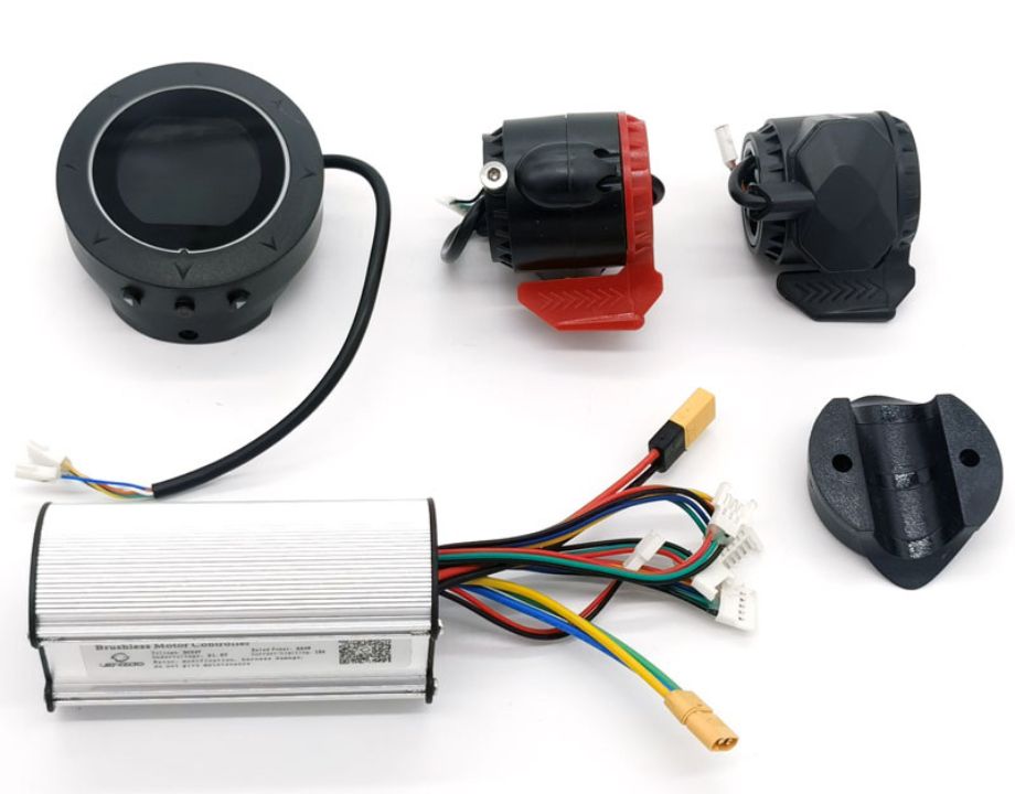 Incluye acelerador, freno de gatillo, controladora, pantalla y pieza de sujeción.