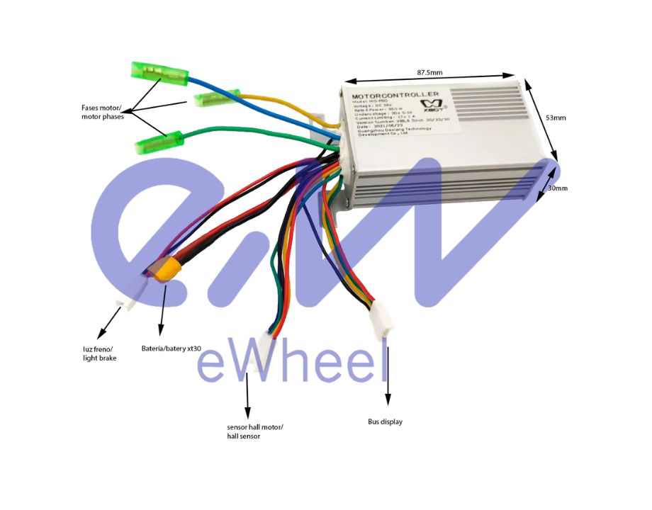 La conexión de cualquier componente del kit en algún otro componente electrónico distinto de este kit así como la mala conexión deja anulada la garantía del mismo. Se vende en kit para instalarlo por completo en un patinete eléctrico o VMP.