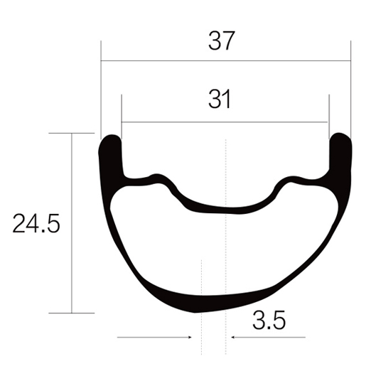 Las llantas de carbono asimétricas permiten una mejor triangulación de los ángulos de los radios y un mejor equilibrio de las tensiones en una rueda construida, lo que da como resultado una rueda más fuerte, más rígida (lateralmente debido a una tensión lateral proporcionalmente mayor), más flexible (radialmente debido a una tensión radial proporcionalmente menor) y más fiable.