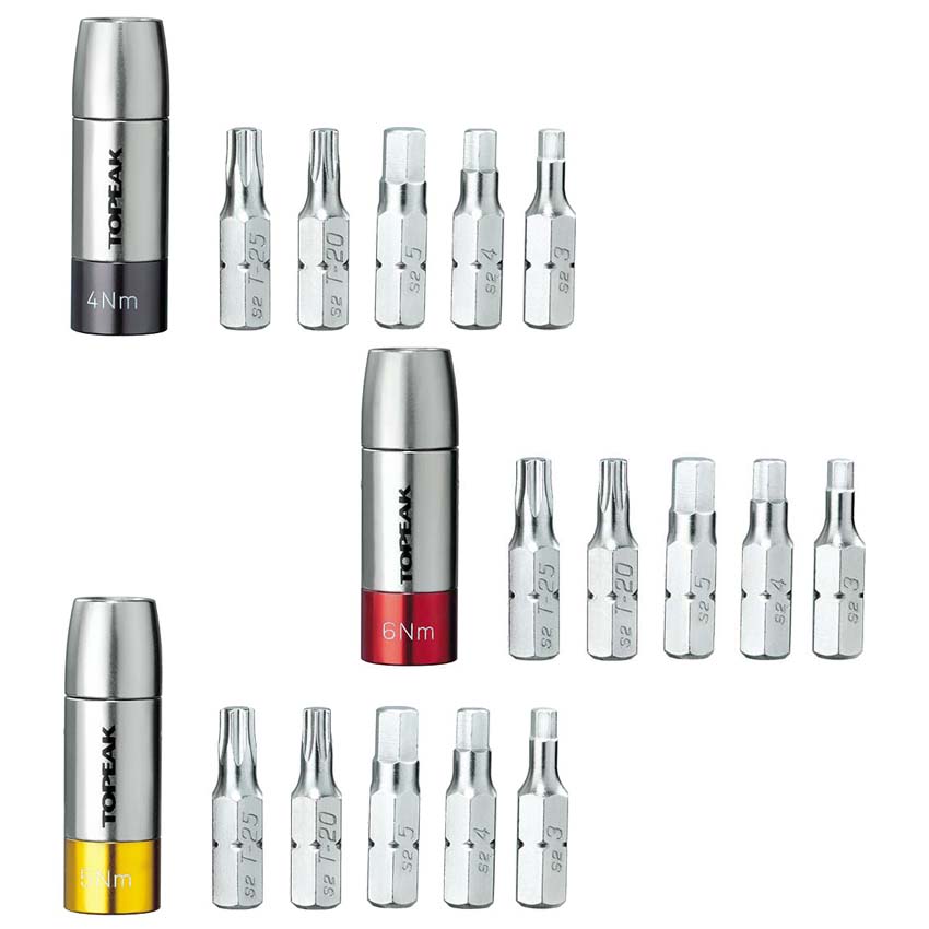 Un estuche de transporte almacena ordenadamente la punta dinamométrica las 5 puntas de herramientas más usadas (allen de 3/4/5 mm y T20/T25 Torx®). La llave está disponible en diferentes pares de apriete, en 4 Nm, 5 Nm o 6Nm. Selecciona el que necesites.