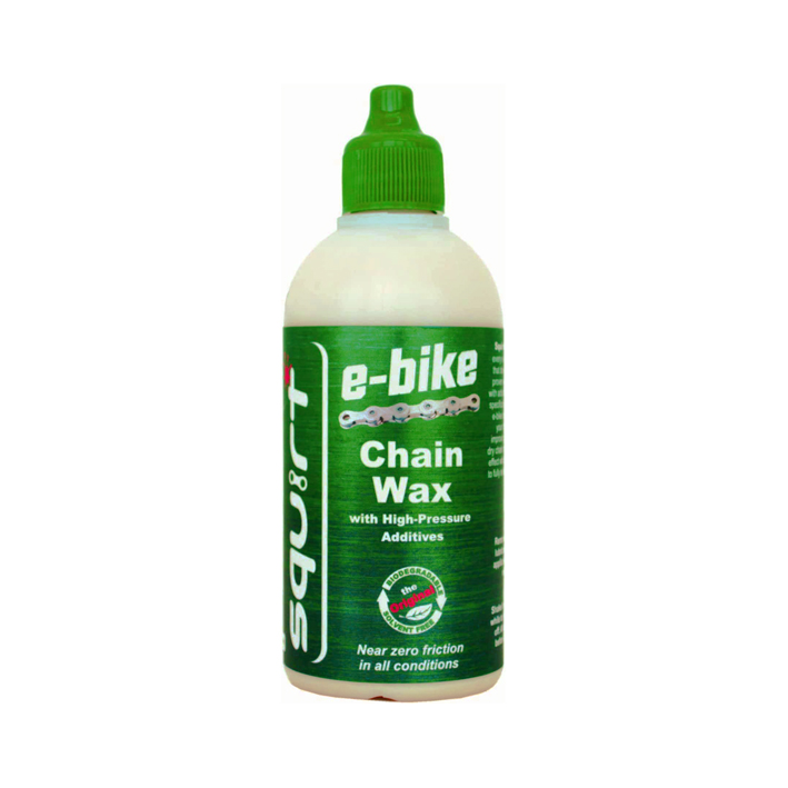 El lubricante Squirt Ebike Chain Wax a base de ceras es un lubricante de larga duración con una tecnología probada de emulsión de cera y agua con modificadores de fricción de alta resistencia, agregados específicamente para soportar la mayor potencia aplicada en las transmisiones de las bicicletas eléctricas.