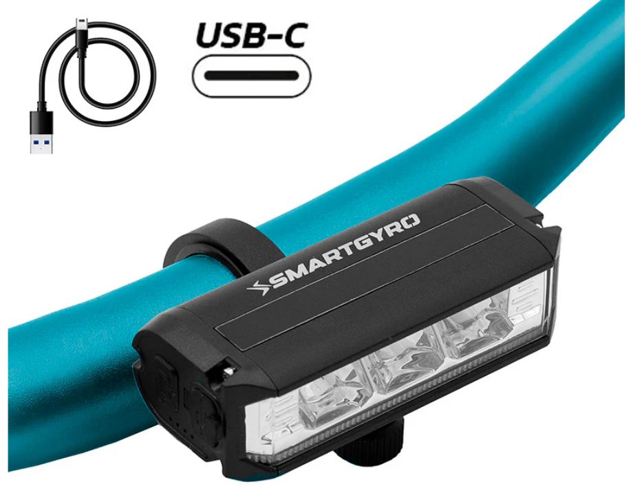 Luz LED delantero recargable por USB-C de la marca Smartgyro PRO HD.