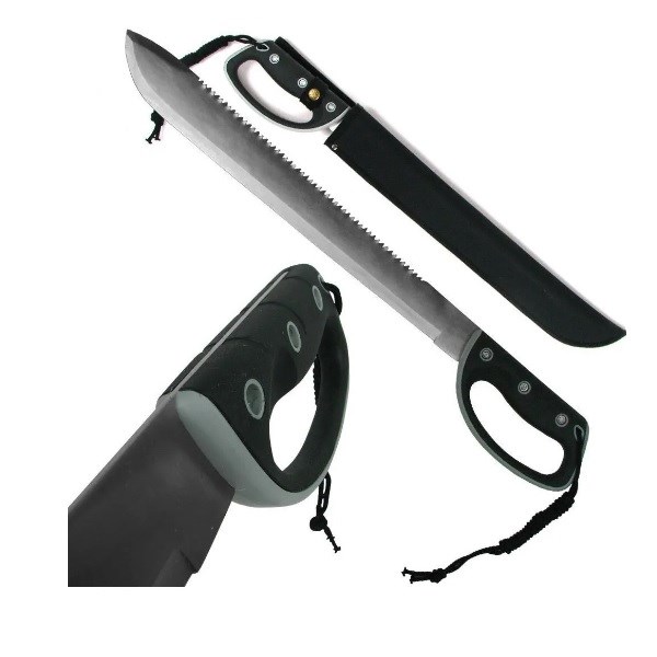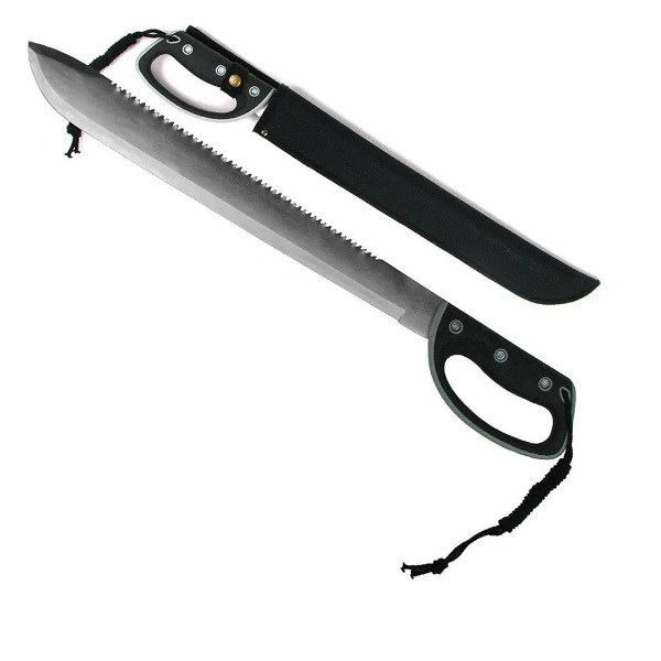 EL MACHETE WHETSTONE FULL TANG DE 61 CM CUENTA CON UNA HOJA AFILADA DE ACERO INOXIDABLE DE 45 CM CON UNA SIERRA DENTADA GRUESA. EL MANGO ABS CONTORNEADO Y RESISTENTE A LOS IMPACTOS CUENTA CON UN PROTECTOR PARA LAS MANOS Y UN PRÁCTICO CORDÓN PARA LA MUÑECA.