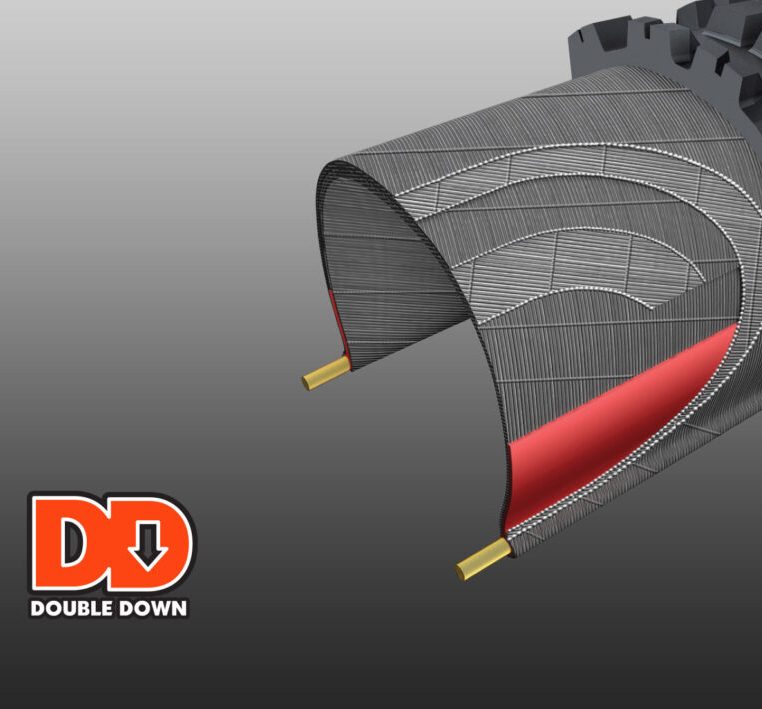 • DD Double Down: Protección formada por dos capas de carcasa de 120 TPI reforzadas con un inserto de butilo para dar protección y un soporte de descenso con un peso contenido.