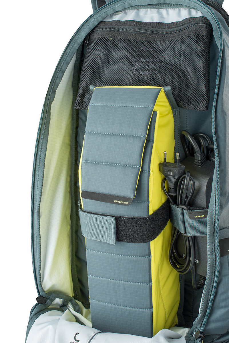 Con un compartimento dedicado para llevar una batería extra de forma segura, esta mochila es ideal para largas travesías en tu Ebike. Además, cuenta con múltiples secciones y bolsillos para organizar herramientas, enseres y documentos. Fabricada en Airo Flex, un material resistente, permeable y flexible, con cinturones de cadera de alta calidad para una transferencia de carga eficiente.