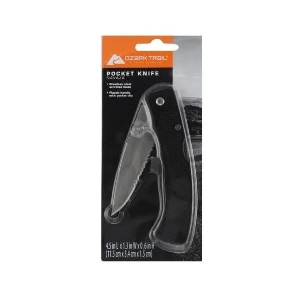 LA NAVAJA DE BOLSILLO DE ACERO INOXIDABLE OZARK TRAIL TIENE UNA HOJA DENTADA