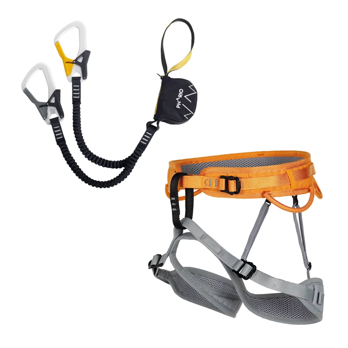 - PHARIO PALM absorbedor de energía con mosquetones de palma con Keylock, cintas elásticas y un indicador de caída
