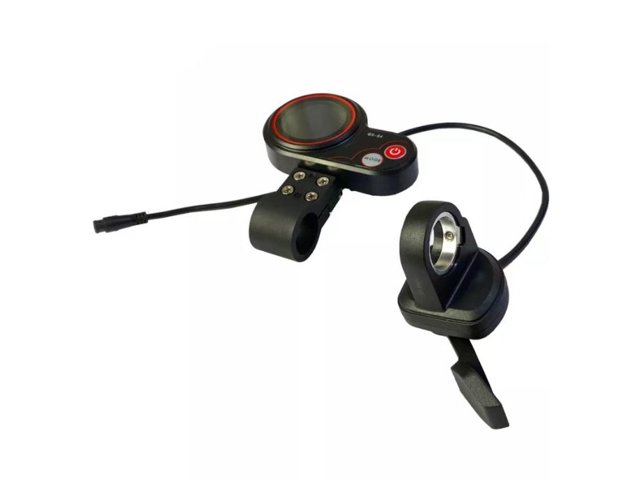 Pantalla LCD con acelerador pulgar ergonómico incorporado.