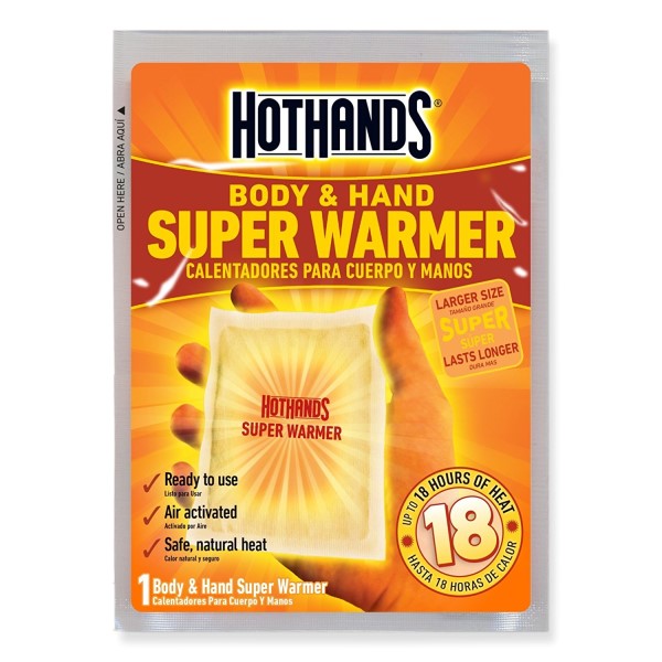HOTHANDS® SUPER WARMERS SON COMPRESAS TÉRMICAS DE UN SOLO USO QUE PROPORCIONAN CALOR TODOS LOS DÍAS Y SON IDEALES PARA MANTENER CALIENTES EL CUERPO Y LAS MANOS CUANDO LA TEMPERATURA SE ENFRÍA. ESTOS CALENTADORES PROPORCIONAN CALOR SEGURO Y NATURAL, PARA QUE PUEDA DISFRUTAR DEL AIRE LIBRE DURANTE ESOS DUROS MESES DE INVIERNO. EL SÚPER CALENTADOR ESTÁ DISEÑADO PARA BRINDAR UNA CALIDEZ DURADERA EXTRA LARGA