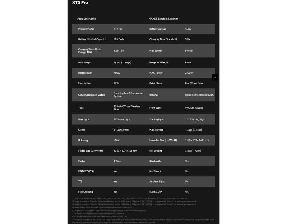 El Navee XT5 Pro DGT es un patinete eléctrico de altas prestaciones diseñado para quienes buscan potencia, estabilidad y una gran autonomía tanto en ciudad como en recorridos más exigentes. Con un motor de hasta 2200W de potencia máxima, suspensión avanzada y ruedas todoterreno de 12”, ofrece una experiencia de conducción superior, cómoda y segura.