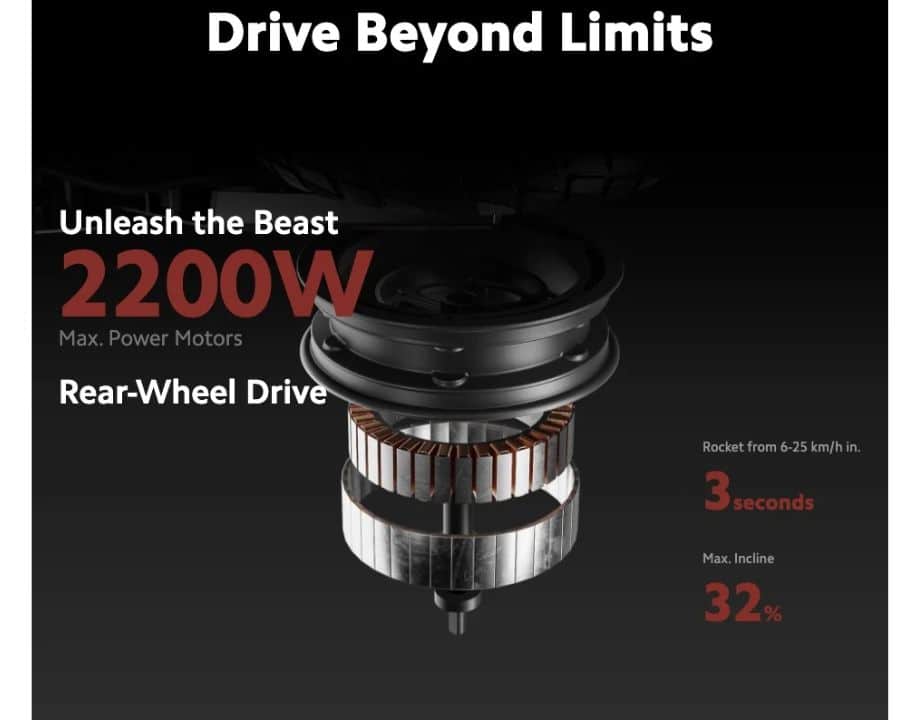 El XT5 Pro está equipado con un motor de 700W de potencia nominal y una impresionante potencia máxima de 2200W, lo que le permite afrontar pendientes de hasta el 32% de inclinación sin perder rendimiento.