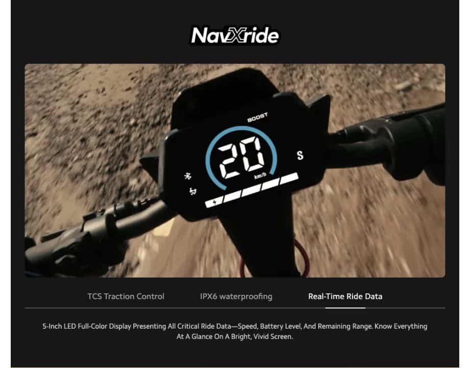 El Navee XT5 Pro equipa neumáticos tubeless off-road de 12 pulgadas, proporcionando: