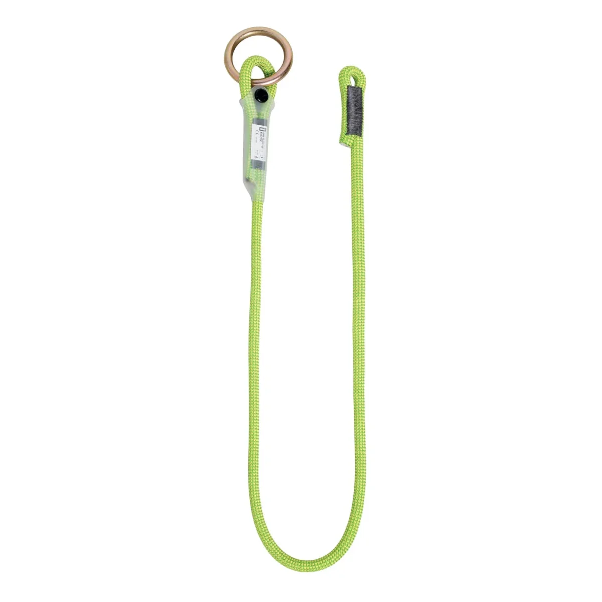 Cinta de cuerda dinámica con anillos cosidos en los extremos para posicionamiento de trabajo y anclaje en arboricultura.