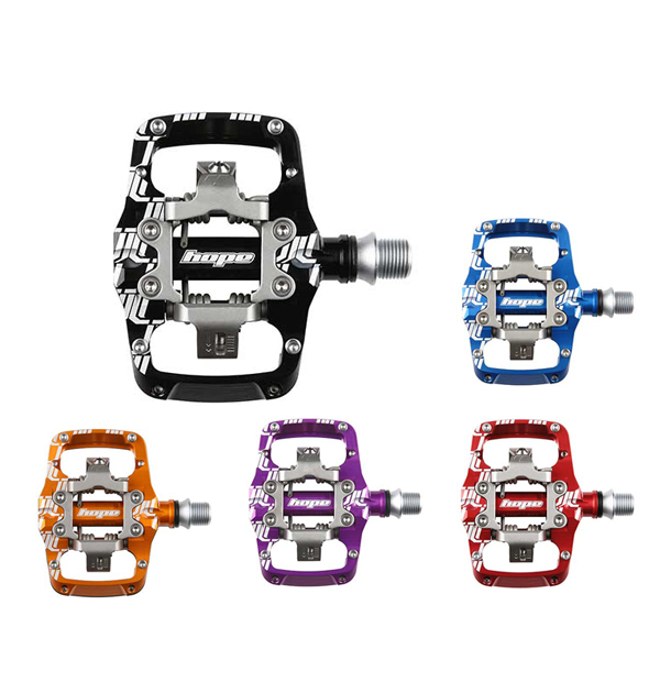 Disponibles en 5 colores anodizados diferentes con logotipos grabados con láser, estos espectaculares pedales Hope darán un toque de distinción a tu bici.