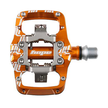 Los nuevos pedales Hope Union Trail Clip TC con plataforma han sido diseñados para las modalidades de Trail, All Mountain y Enduro. Su amplia plataforma ha sido fresada en torno CNC y tiene 4 pines desmontables por cada cara para mejorar el grip en las situaciones complicadas. El cuerpo del pedal gira sobre un eje de acero Cr-Mo de alta resistencia, y gracias a su amplia superficie de contacto hace que el pedal se note estable y seguro. Con unos rodamientos sellados de alta calidad, el agua y suciedad se mantendrán al margen para que el rendimiento y buen funcionamiento del pedal se mantenga durante mucho más tiempo.