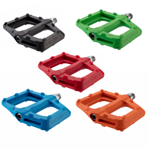 Los Pedales Race Face Ride presentan una plataforma delgada en un compuesto ultra resistente de nylon. Están disponibles en 9 opciones de colores vivos y ofrecen un diseño cóncavo, ligero y gracias a sus pines colocados estratégicamente dan un gran grip.